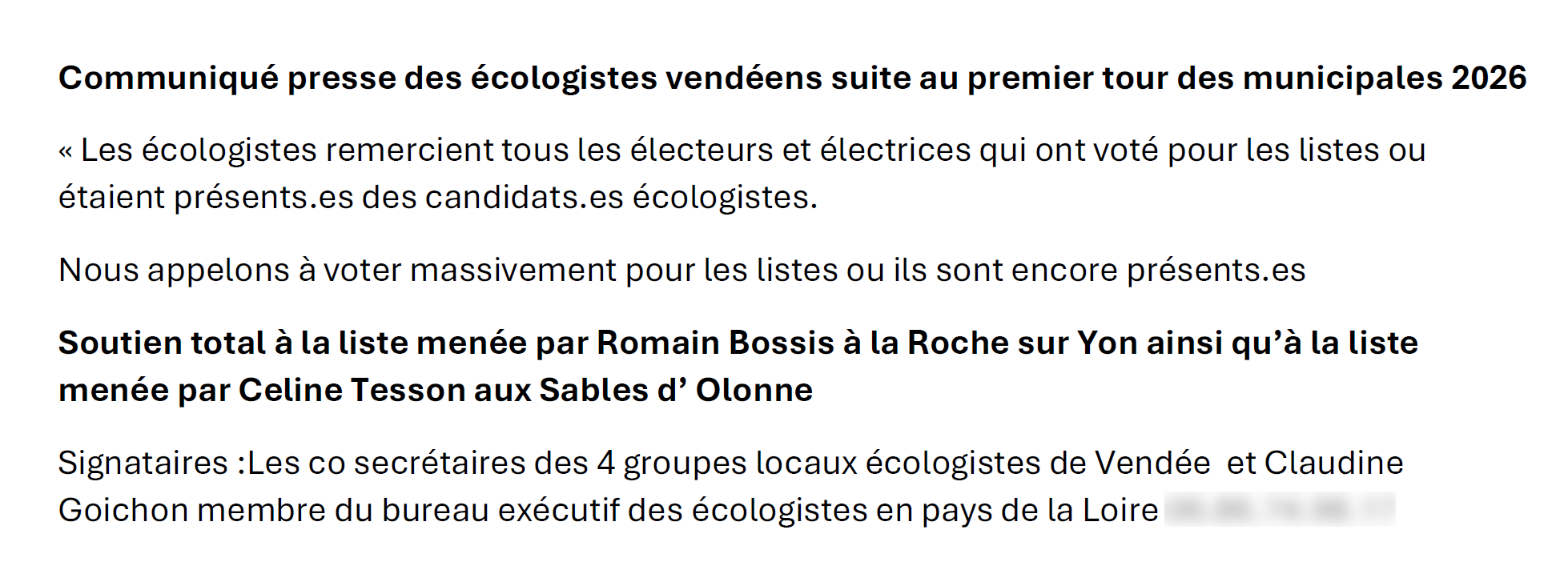 Nous leur adressons nos remerciements et nous invitons respectueusement leurs adhérents et adhérentes à se mobiliser pour que notre projet social, écologique et humaniste l’emporte dimanche prochain dans les urnes.